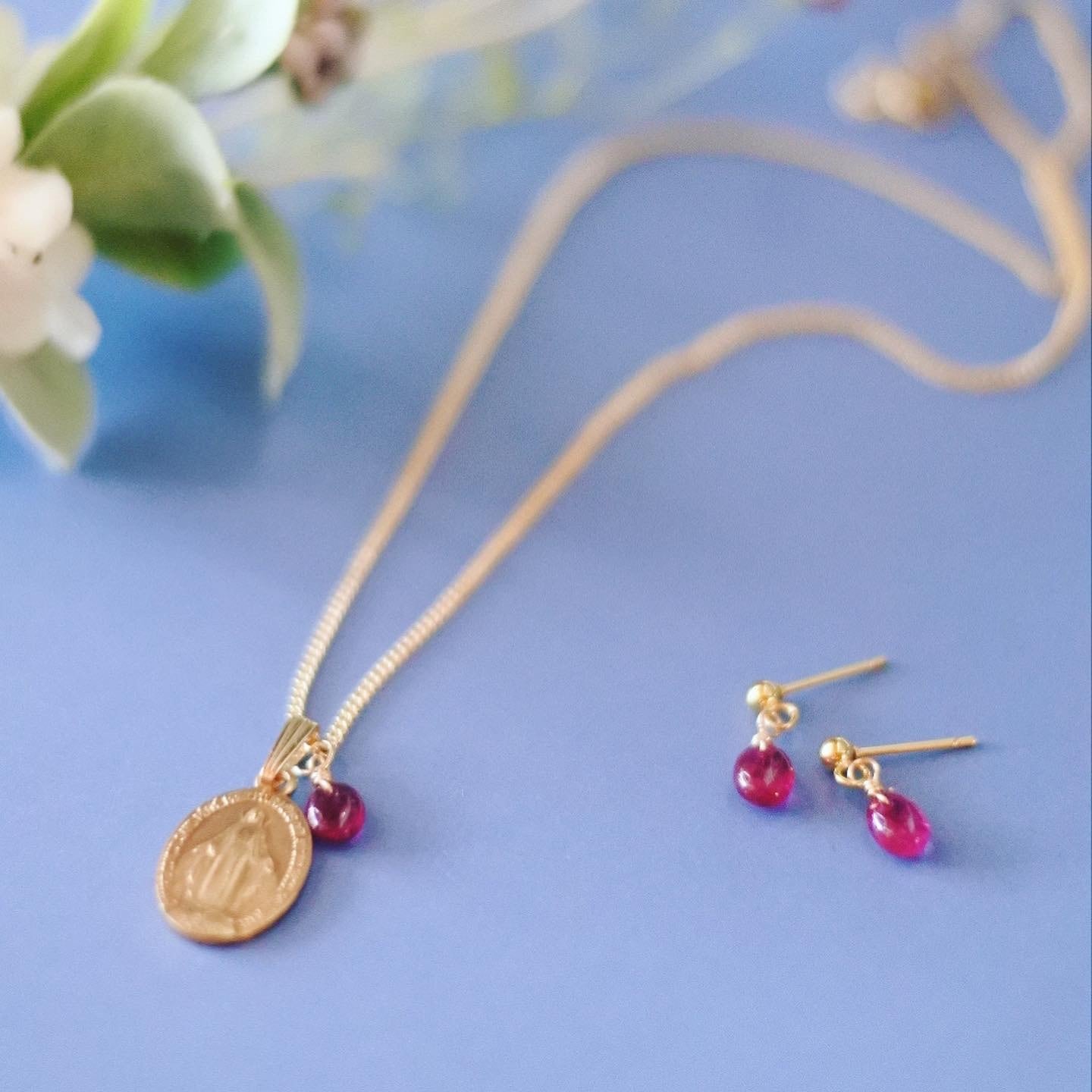 10月誕生石【パリ・奇跡のメダイユ】ピンクトルマリン ピアス/ネックレスセット