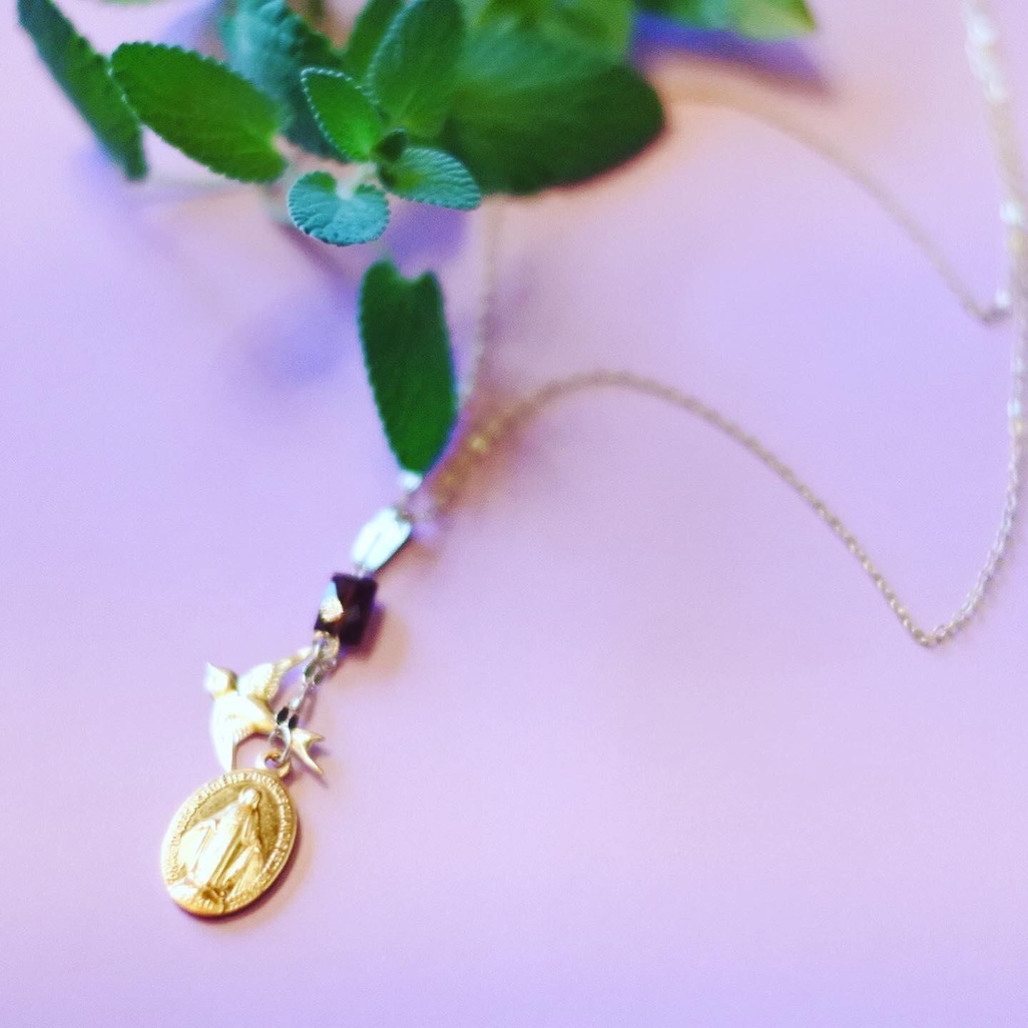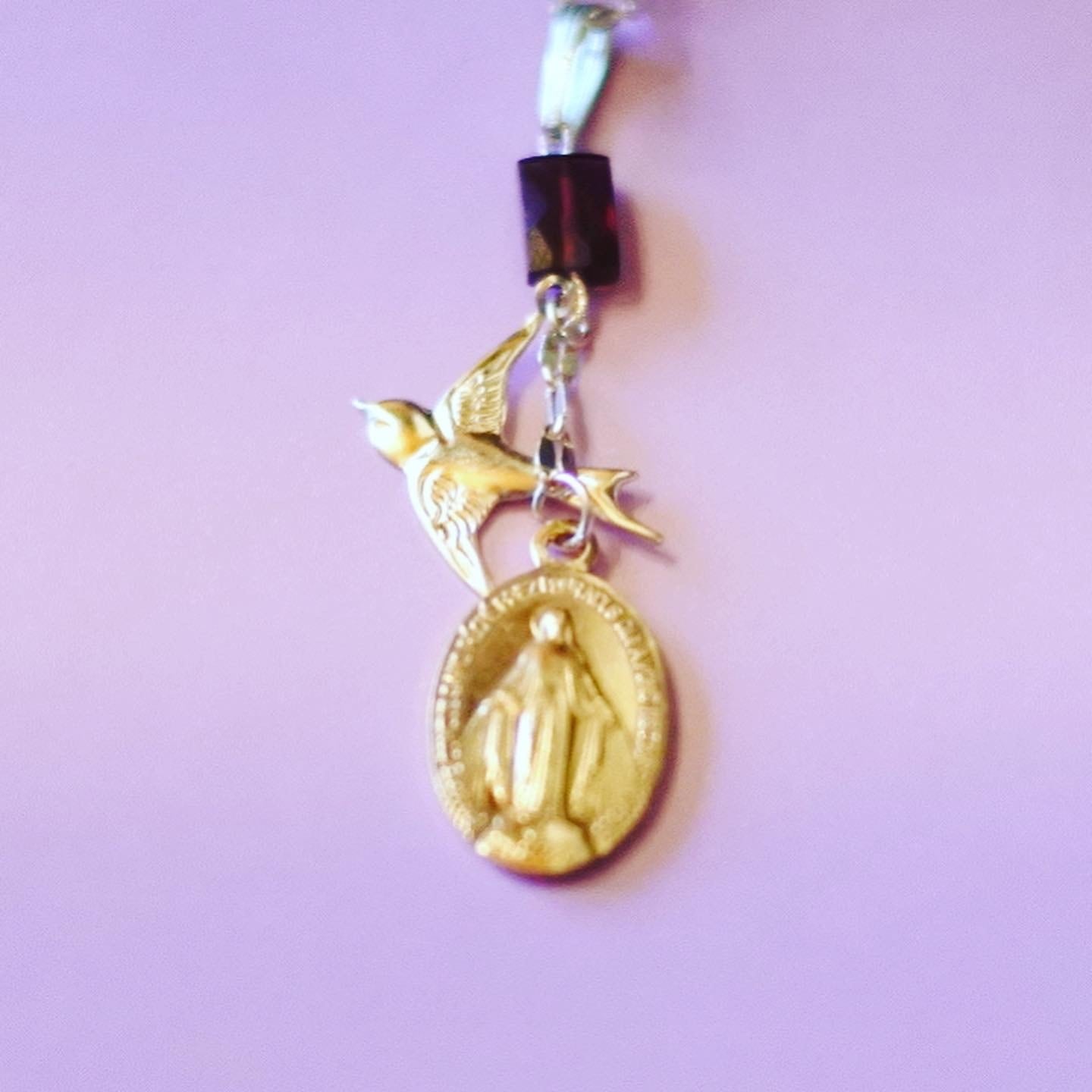 【フランス・奇跡のメダイ】1月誕生石ガーネット幸運のツバメ14kgf ネックレス