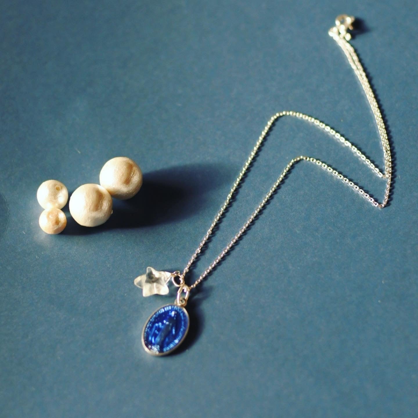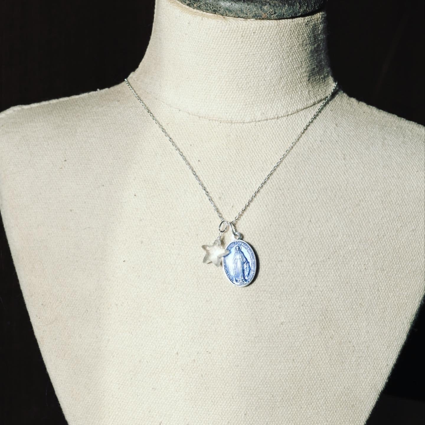 【フランス・奇跡のメダイ】シルバーブルー(大)・星型クォーツ ネックレス