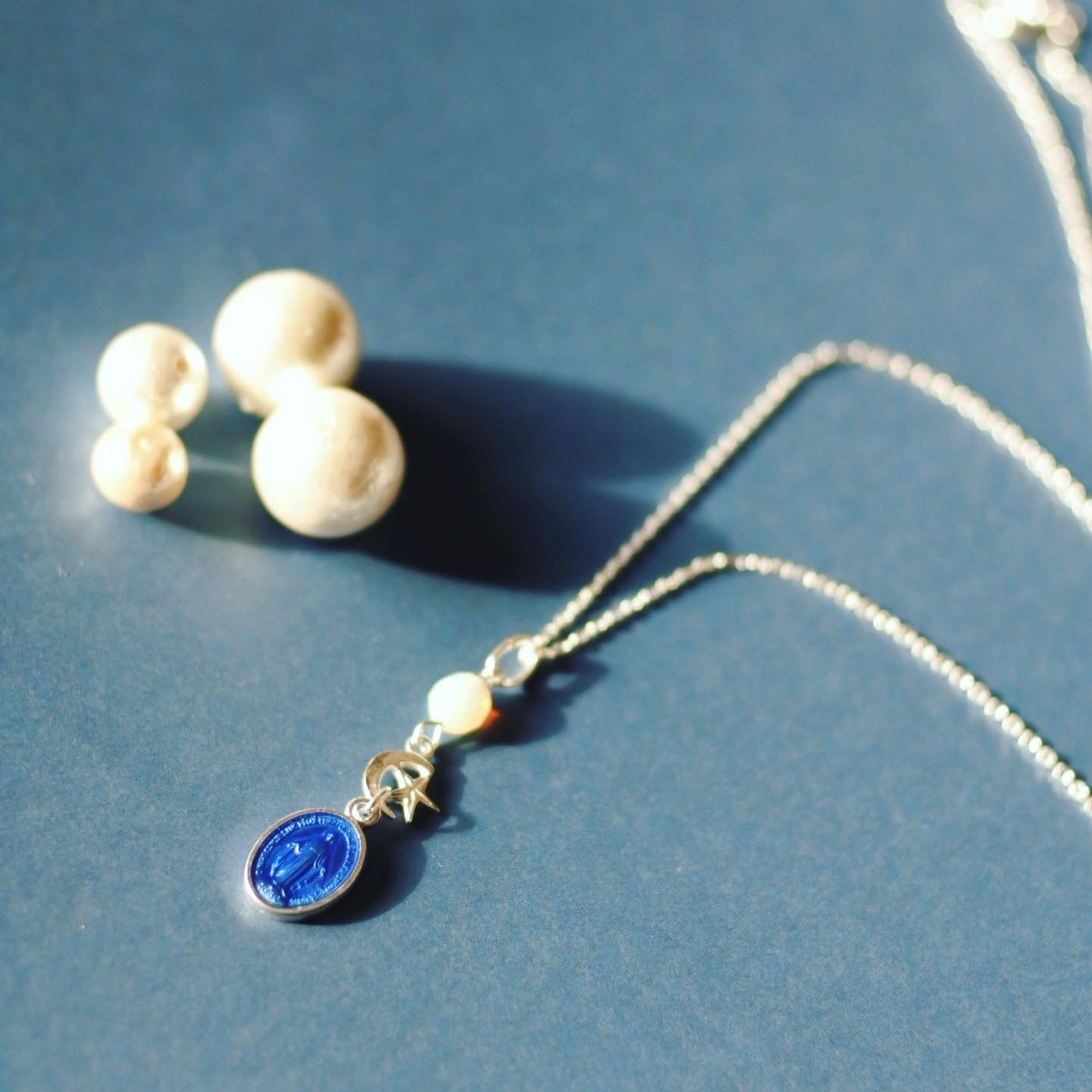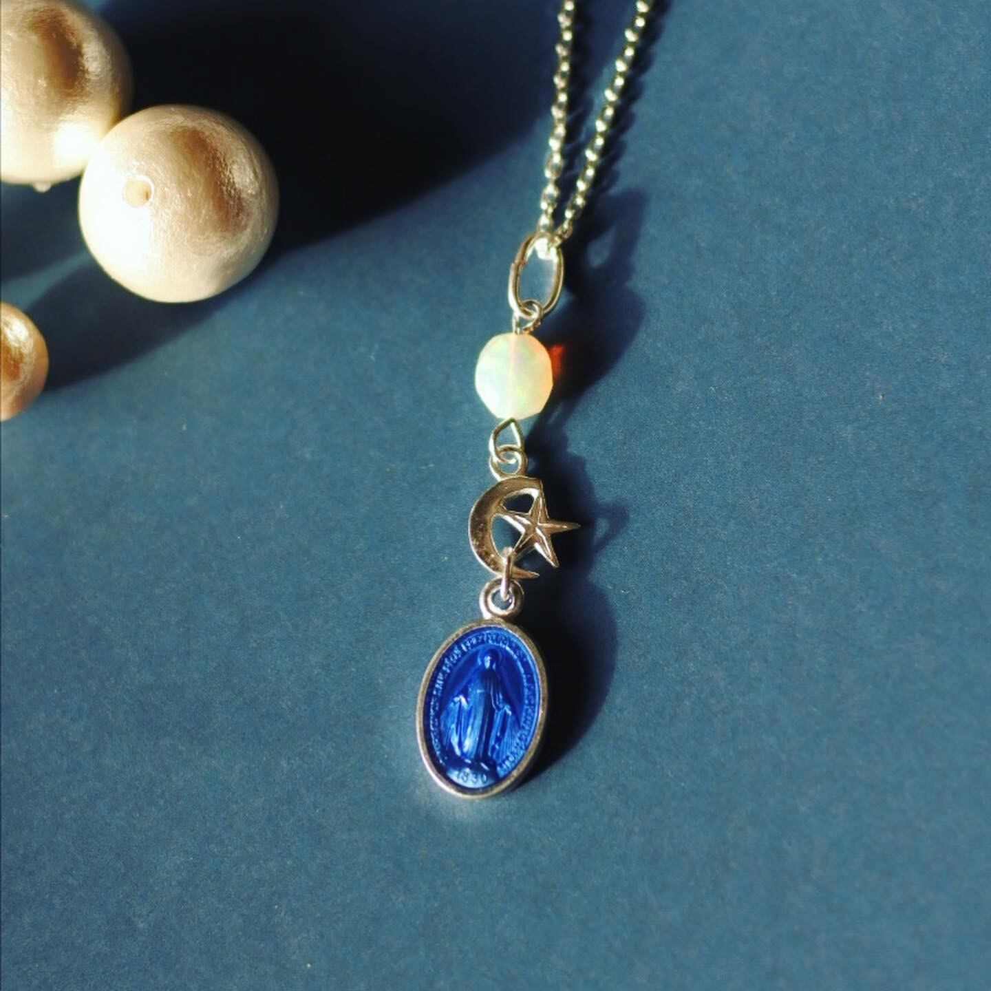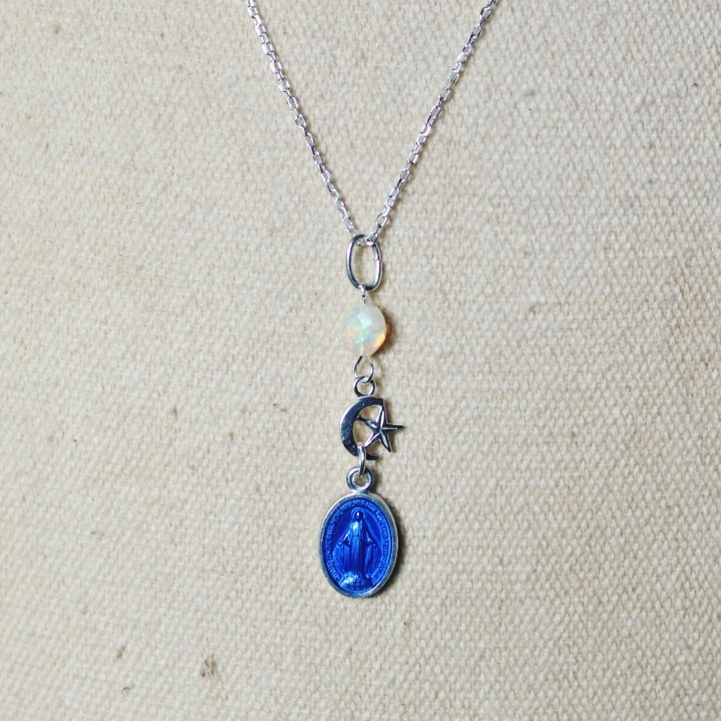 【フランス・奇跡のメダイ】ブルーシルバー・星月夜とオパール ネックレス