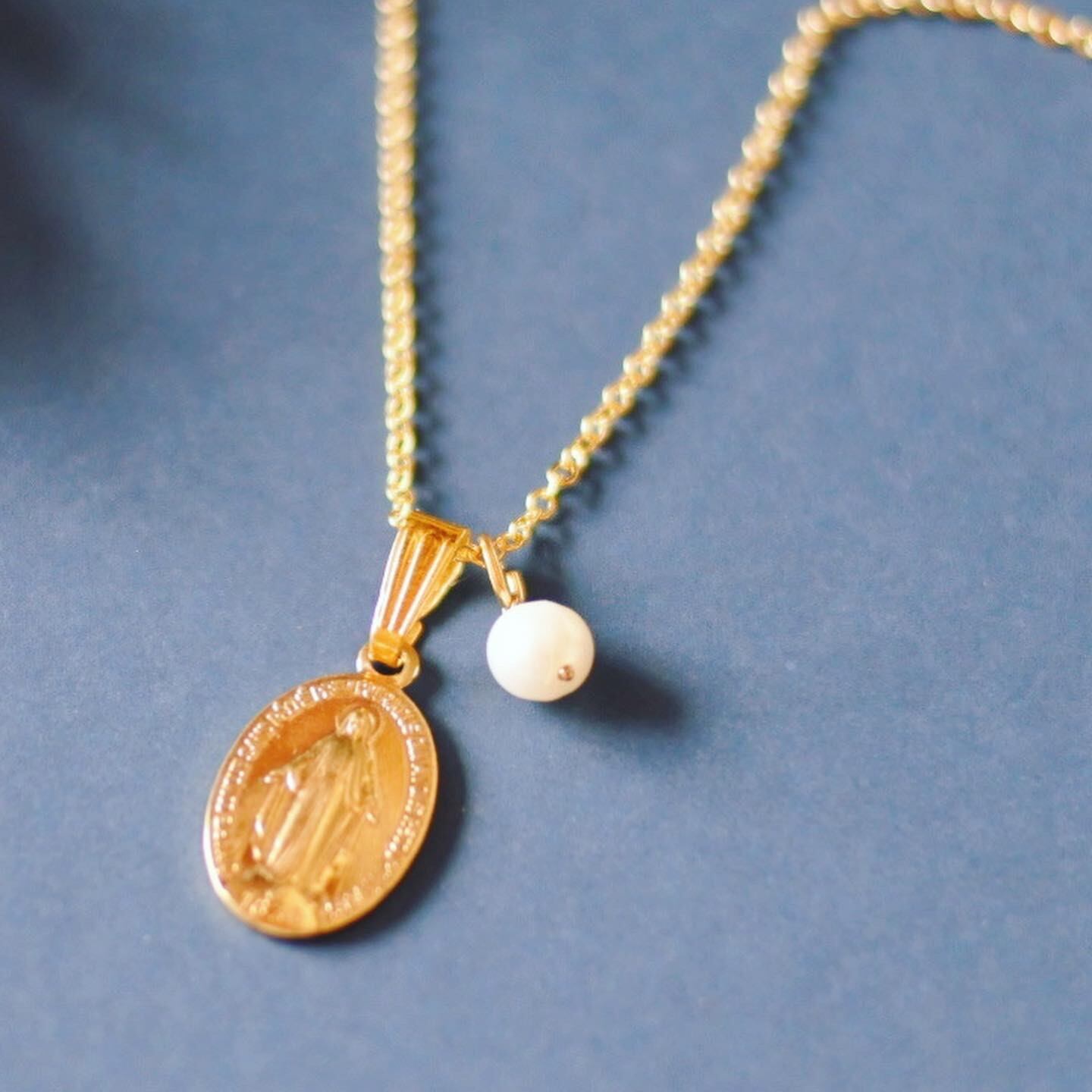 6月の誕生日・淡水パールと奇跡のメダイをセットアップしたネックレスです。