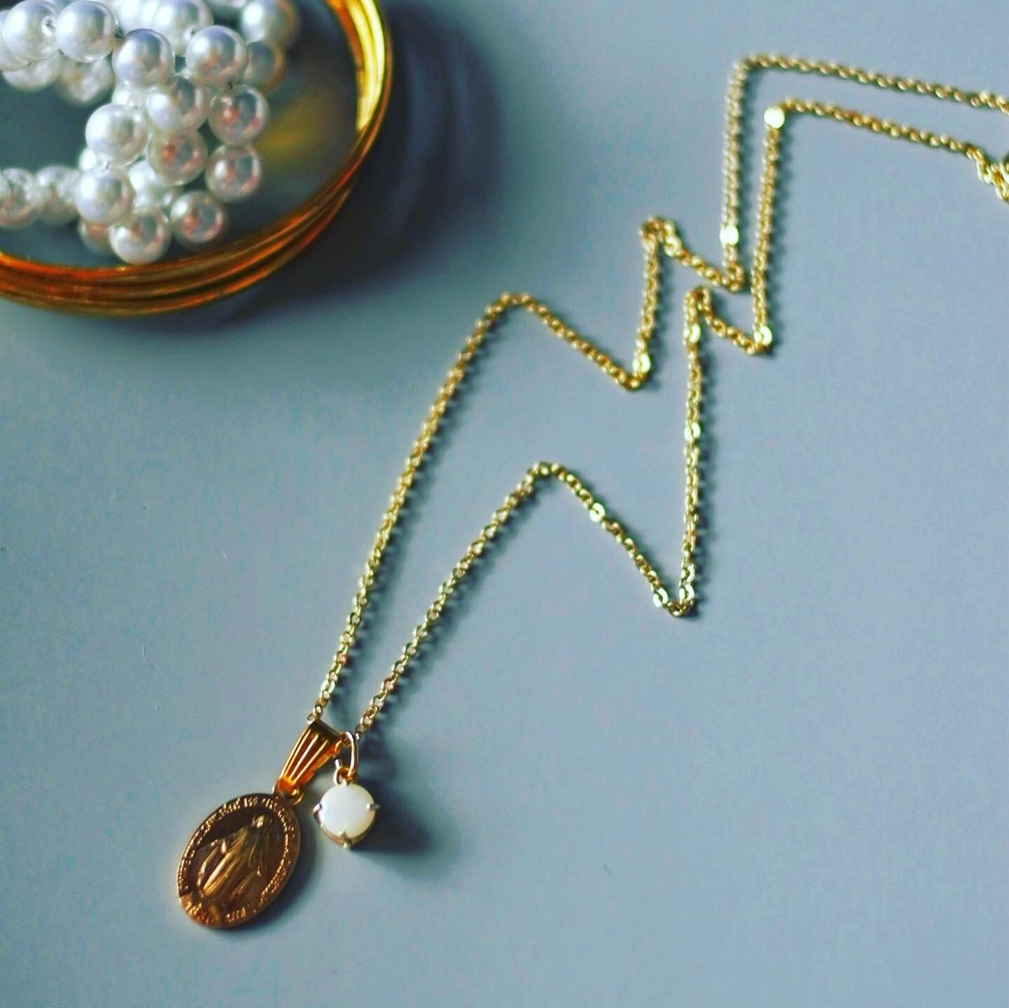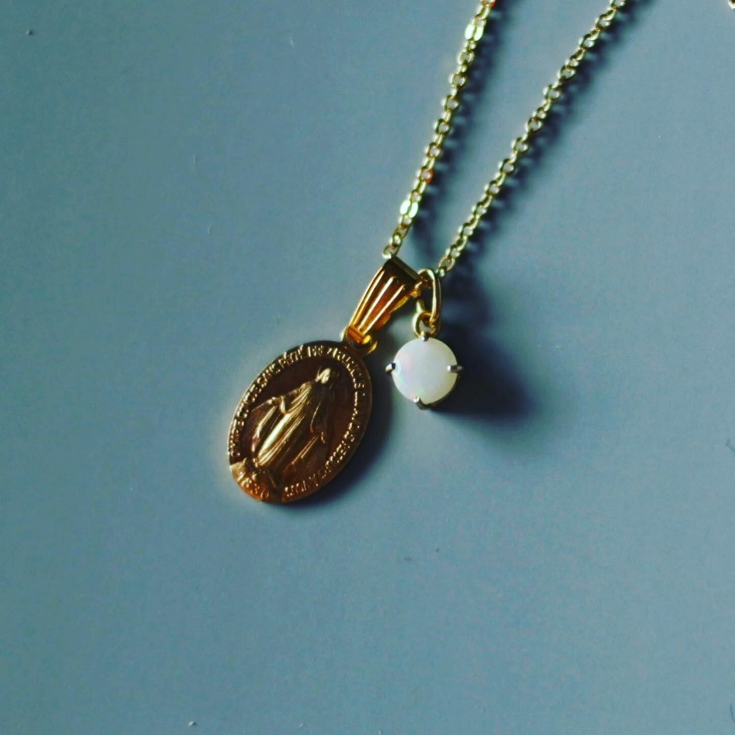 10月誕生石【パリ・奇跡のメダイユ】プレシャスオパール・14kgf・ネックレス